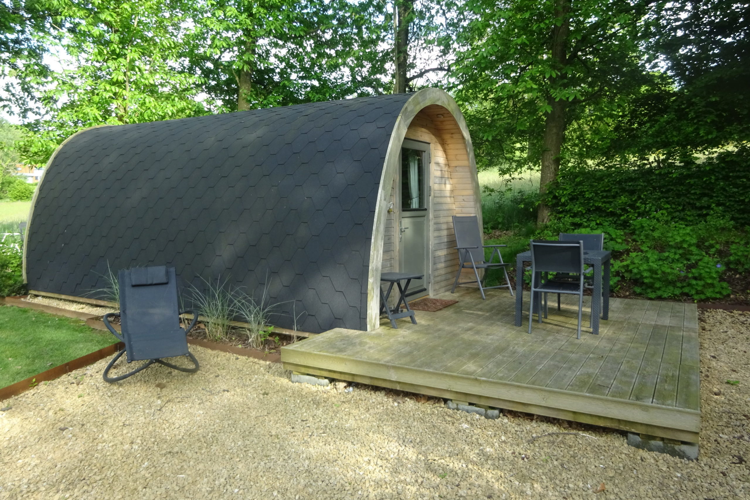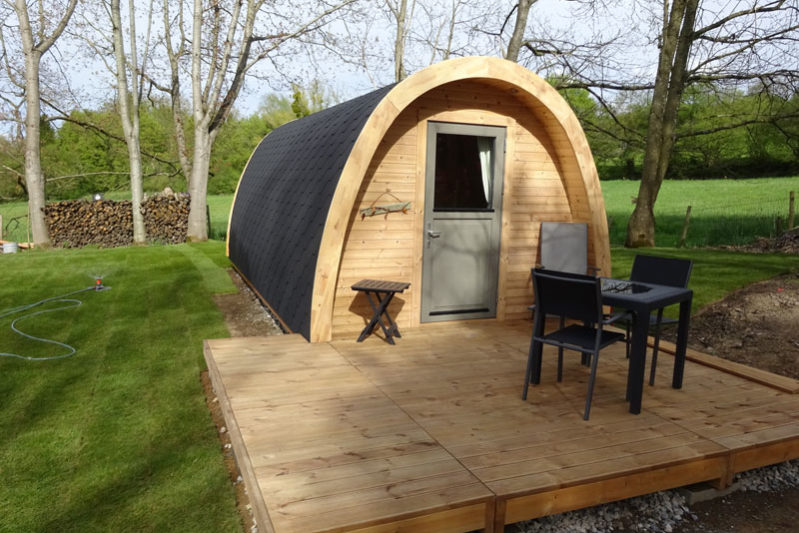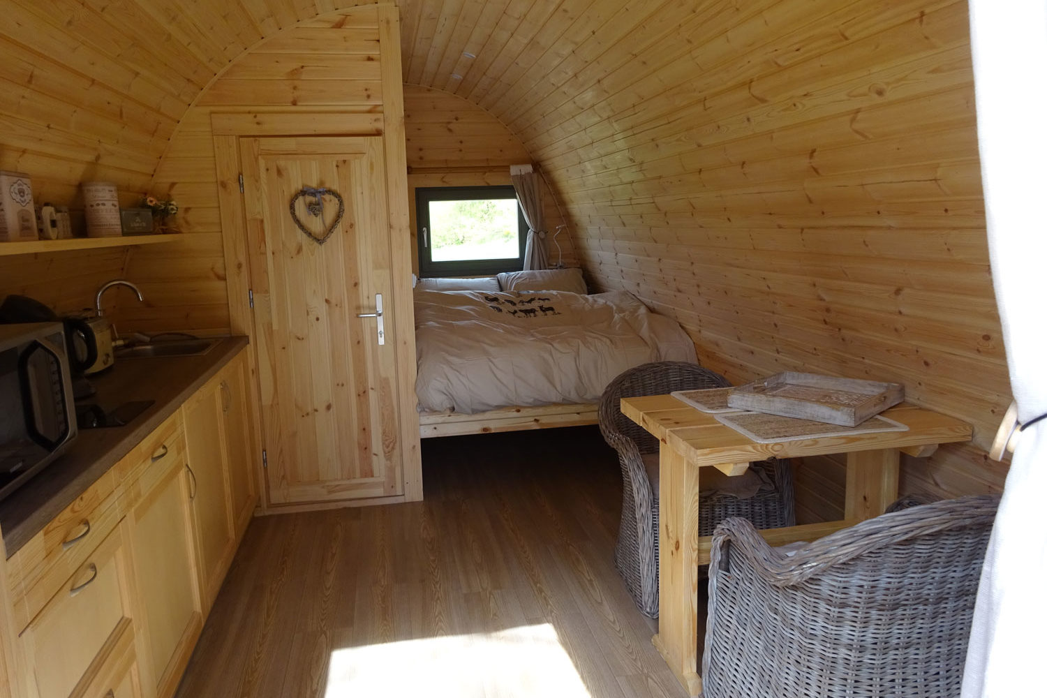 The pod is like a small chalet, a small oval shape bungalow made of wood. lt’s a unusual accommodation, 100% natural!